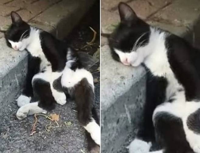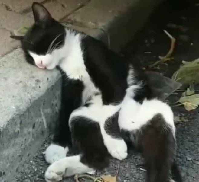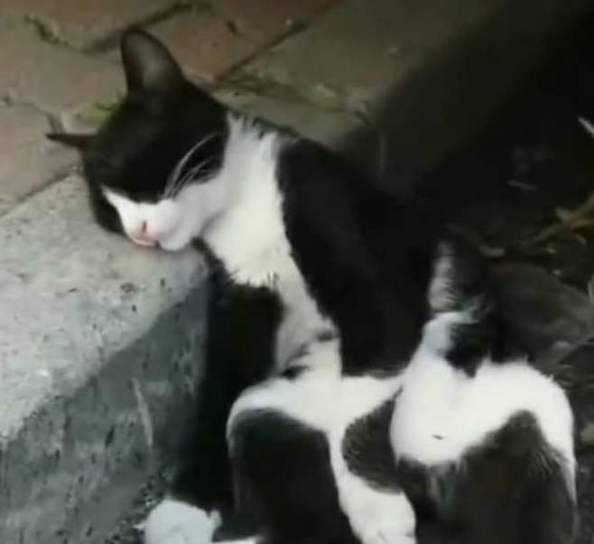 공개된 영상에 따르면 오랫동안 굶주림이라는 허기짐 때문인지 아니면 떠돌이 생활이 지쳤는지 길고양이는 고스란히 잠들었는데요.