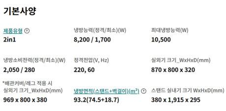 에어컨의 스펙표를 보면 냉방능력과 소비전력을 고지하고 있는데, 그렇가면 이 값을 기준으로 냉방효율을 계산할 수 있을까요?