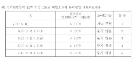 냉방효율을 기준으로 부여