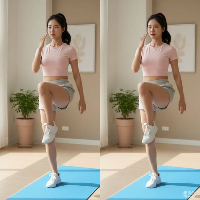 1. 교차 동작으로 몸을 깨우는 '무릎 들기 변형'