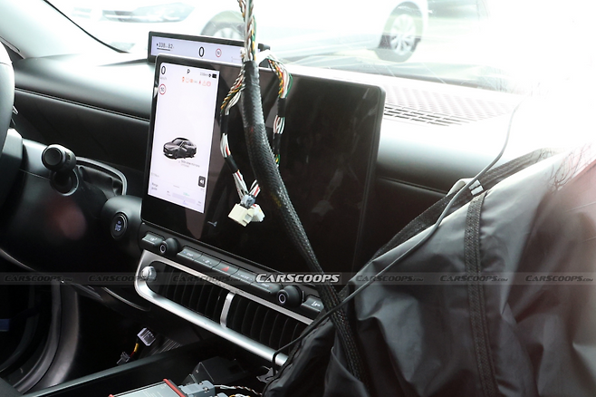 실내 역시 큰 폭으로 개선될 전망입니다. 코나 SX3의 가장 큰 특징은 브리지 스타일 센터콘솔 구조입니다. 현대차는 아이오닉 5와 아이오닉 6 등 전기차에서 적용했던 컬럼식 전자식 변속기(Shift-by-Wire)를 코나에도 적용할 가능성이 높습니다. 이 방식은 기어 셀렉터를 스티어링 칼럼으로 이동시키는 구조입니다. 그 결과 센터 콘솔 아래 공간이 비어 대형 수납공간을 확보할 수 있는 장점이 있습니다.