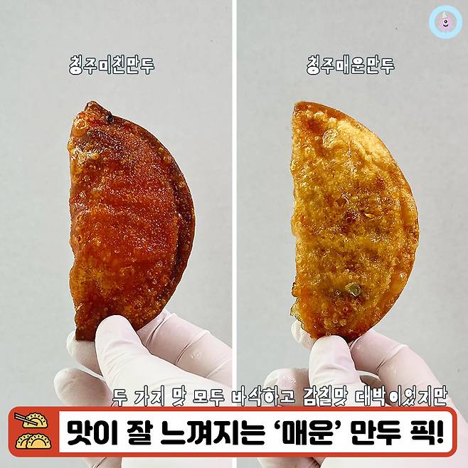 식었을 때에도 일반 군만두에 비해 만두피가 눅눅해지지 않아서 또 한 번 만족! 한 번 맛을 보고나니 군만두에 관심이 없던 저도 또 생각이 날 정도였어요. 미친만두는 한번 맛본 것만으로 충분했고, 매콤한 맛과 만두의 맛이 다 잘 느껴졌던 청주매운만두가 자꾸만 떠오르는 것 있죠?!