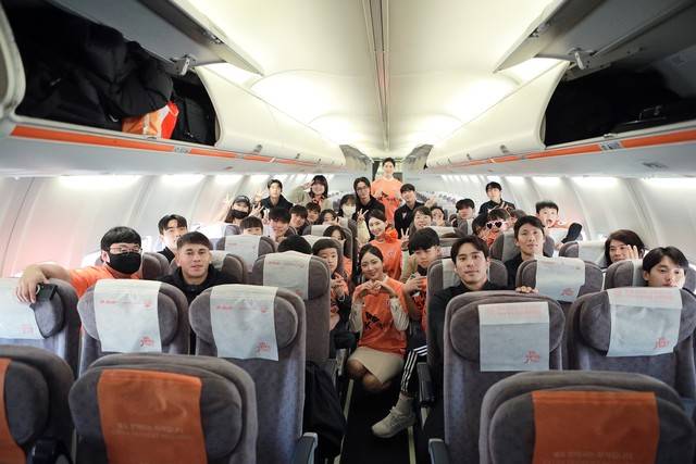 제주는 지난 24일 대전 월드컵경기장에서 대전 하나시티즌을 상대로 하나은행 K리그1 2024 38라운드 최종전(1-2 패)을 치렀다. 이날 경기를 앞둔 제주는 최종전이 원정경기로 치러지는 점을 감안해 팬들을 위한 특별한 엔딩을 준비했다. 바로 원정 비행기 옆 자리에 제주 선수가 함께 타고 가는, 그 어디서도 듣지도 보지도 못한 모두가 상상만했던 장면이었다. 주황꿈이 현실로 떠오르기 위해서 제주의 또 다른 12번째 선수인 제주항공도 적극 협조 및 지원에 나섰다.