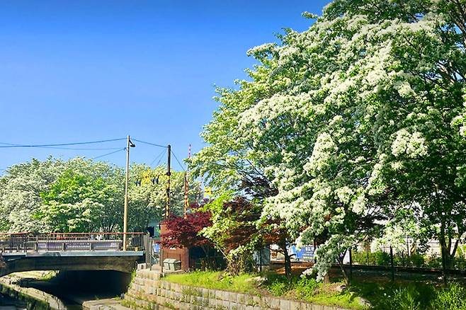 평소에는 조용한 공원이지만, 5월이 되면 이팝나무들이 줄지어 피어나며 새하얀 꽃 터널을 만들어 냅니다.