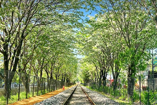 전북 전주에는 이팝나무와 철길이라는 의외의 조합으로 이색적인 풍경을 만들어내는 장소가 있습니다.