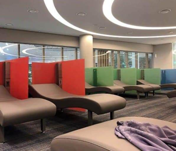 모든 출국 절차를 마쳤다면, 빠르게 탑승구역으로 이동해도 좋습니다. 탑승 구역 곳곳에는 무료로 이용할 수 있는 '수면의자'가 마련되어 있기 때문인데요. 자리별로 USB포트와 콘센트가 설치되어 있어 여행 전 전자기기를 충전하기에도 좋습니다.