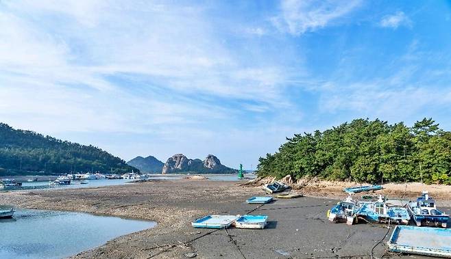 이 섬의 가장 인상적인 장면은 바닷길이 열리는 순간이다. 물때가 맞으면 무녀도 앞바다에 길이 드러나며, 일명 ‘쥐똥섬’이라 불리는 작은 섬까지 걸어서 이동할 수 있다.