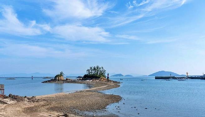 이 섬의 가장 인상적인 장면은 바닷길이 열리는 순간이다. 물때가 맞으면 무녀도 앞바다에 길이 드러나며, 일명 ‘쥐똥섬’이라 불리는 작은 섬까지 걸어서 이동할 수 있다.