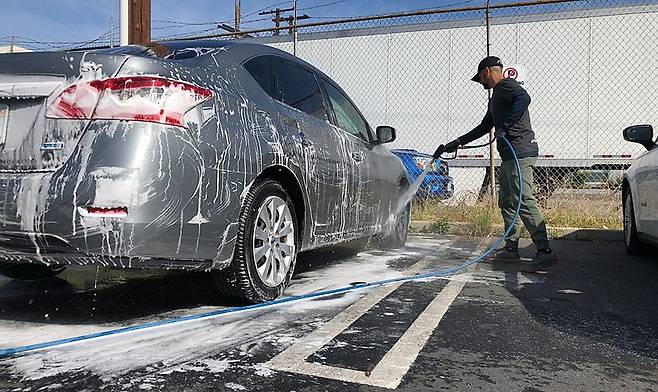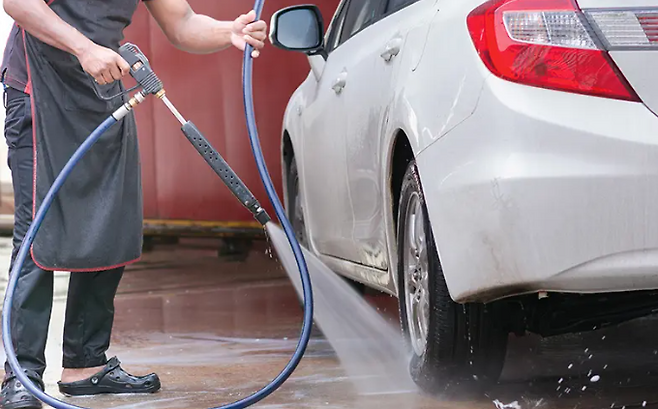 세차하러 들어가면 가장 먼저 하는 일, 고압수 뿌리기죠.