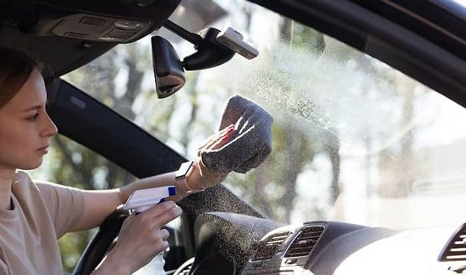 때문에 유리 안쪽을 닦을 때는 물에 적신 타월을 짜서 사용하거나 썬팅필름 전용 세정제를 쓰는 것이 좋습니다.