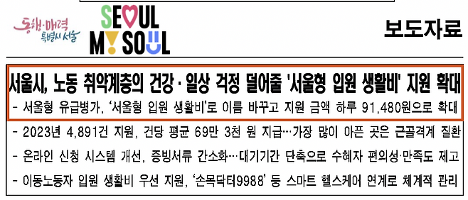 서울형 입원 생활비
