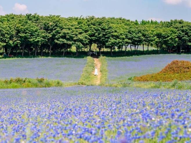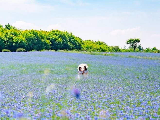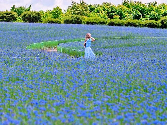 충청남도 예산군 고덕면에 위치한 아그로랜드 태신목장은 5월에 수레국화와 다양한 봄꽃이 만개하며 동화 속처럼 아름다운 풍경을 자랑한다.