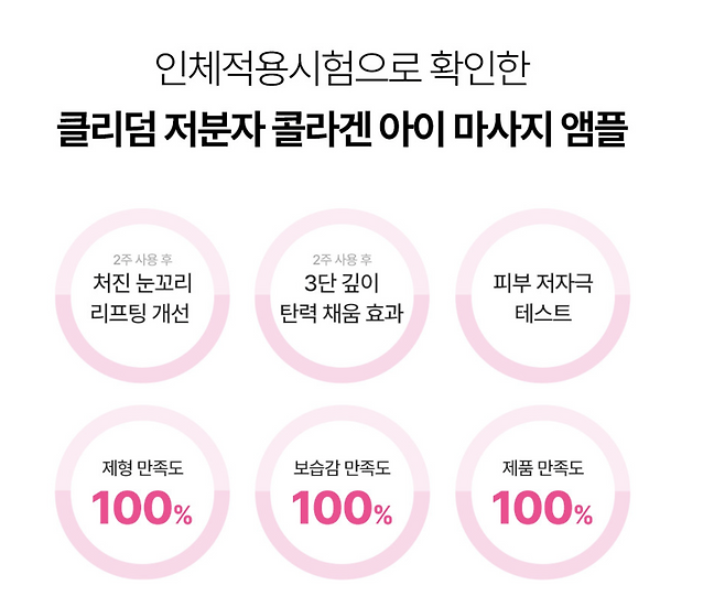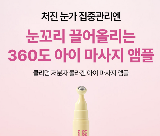 눈가 피부 관리에 초점이 맞춰진 앰플로, 저분자 콜라겐이 함유되어 흡수가 빠르고 탄력 효과가 뛰어나요.