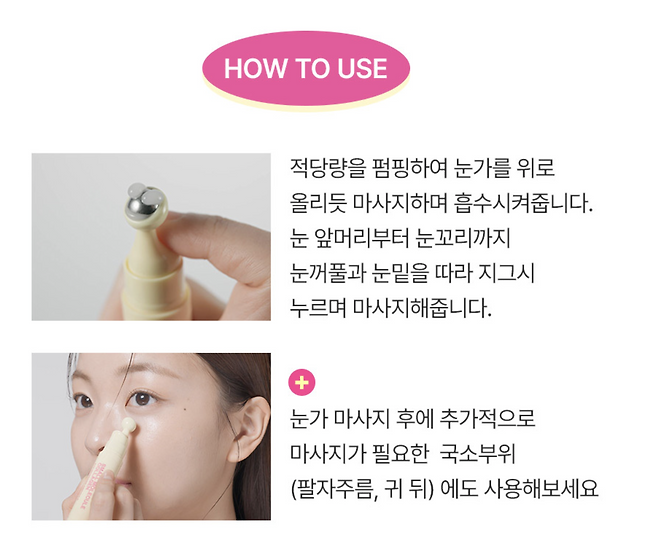 눈가 주름이 고민이거나, 아침마다 부은 눈 때문에 스트레스받는 분들께 딱 맞는 아이템이에요.