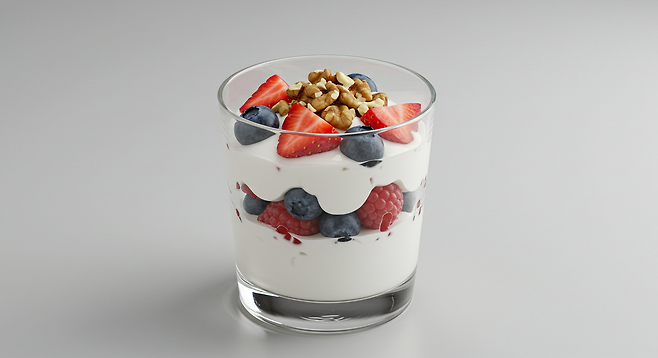 그릭 요거트는 단백질이 풍부하여 한 컵당 약 20g의 단백질을 제공합니다. 여기에 라즈베리, 블루베리 같은 베리류와 호두나 아몬드를 더하면 완벽한 아침 식사가 됩니다.