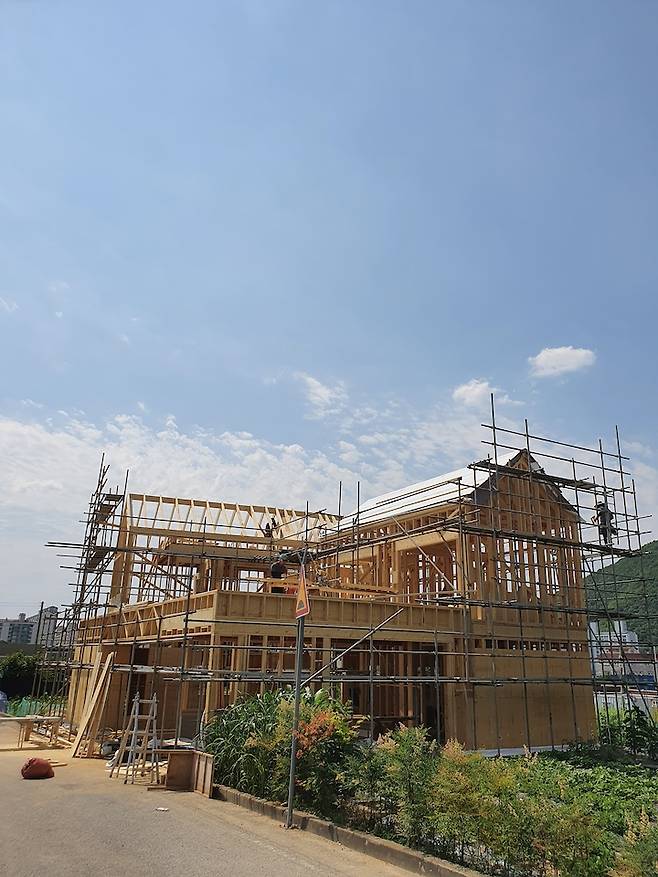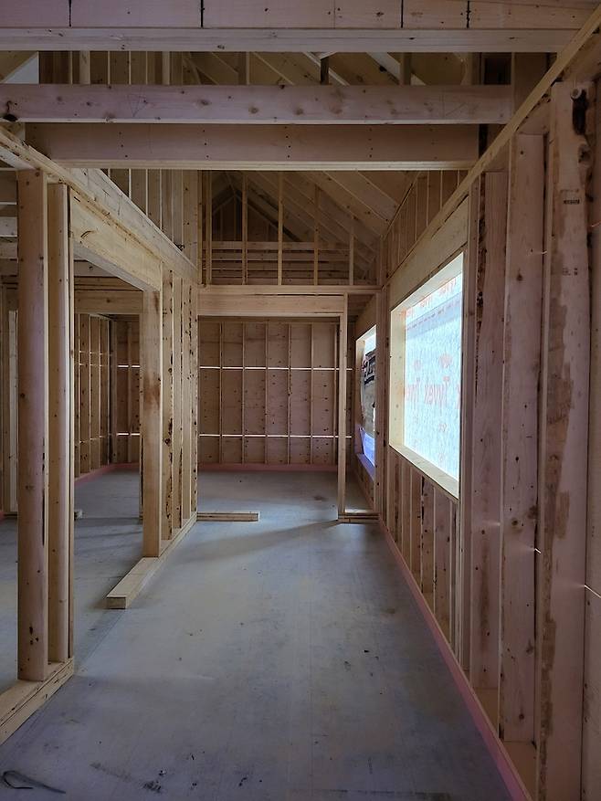 작년 6월 기초 공사를 시작했는데 목조주택이어서 그런지 골조 공사까지 금방 끝이 나더라고요. 남편은 주택 단열에 대해 엄청나게 걱정 했었어요. 단열을 생각해서 목조 주택으로 결정한 것도 있었고요!