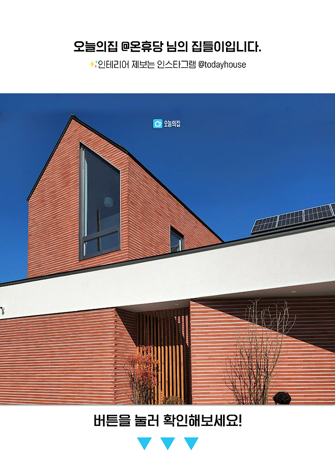 외장재는 롱브릭타일 탱고레드색으로 시공했어요. 처음 남편과 외관 색상에 대해 먼저 이야기를 나누었어요. 그레이 또는 레드 계열로 하자! 라고 생각만 하다가, 우연히 다른 동네에 적벽돌 주택을 보고 저거다! 싶었어요. 남편과 의견이 맞아서 쉽게 결정할 수 있었죠. 지금도 탱고레드색은 진리입니다 :)