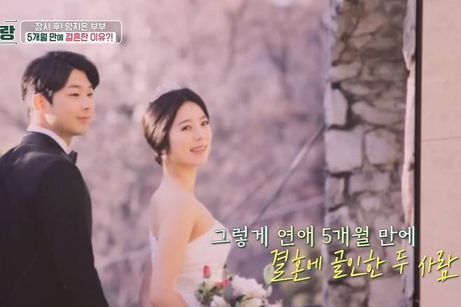 두 사람은 만난 지 한 달 만에 프러포즈하며 평생을 약속했고, 달콤한 연애를 이어가다 5개월 만에 초고속으로 결혼에 골인했다고 밝혔습니다.