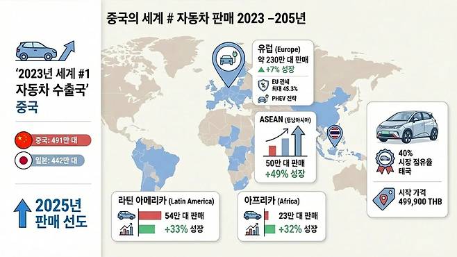 중국 완성차 업체들이 2025년 사상 처음으로 글로벌 신차 판매량에서 일본을 앞지르며 세계 1위 자리에 올라선 것이다.