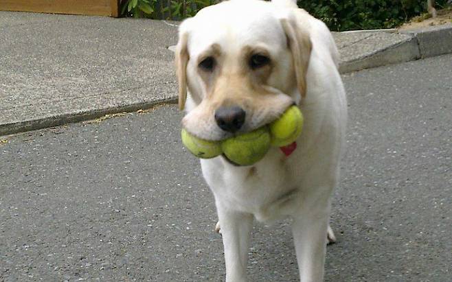 마지막으로 테니스 공의 경우 강아지 치아를 마모시키기도 합니다. 거칠거칠한 테니스 공의 겉 부분 천이 강아지 치아를 사포처럼 갈게 되는 거죠. 그래서 가급적 강아지에게 테니스 공은 주지 않는 게 좋답니다.