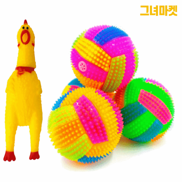 그녀마켓 강아지 장난감 삑삑이 공 셋트 야광공 발광볼 3+1 닭인형증정