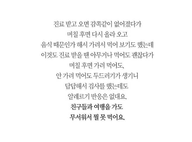 안녕하세요, 미독정입니다. 오늘 여러분과 함께 알아볼 질병은 바로 두드러기입니다. 흔하게 나타나는 질환이지만, 한 번 발생하면 장기간 동안 반복적으로 나타나 쉽게 벗어나기 어렵게 만들죠. 하지만 다른 만성 피부 질환에 비해서는 스트레스가 덜한 편이라고 합니다. 왜냐하면 시간이 지나면서 자연스럽게 증상이 사라지는 경우가 많기 때문입니다. 물론, 대부분 수 분에서 수 시간 내에 증상이 사라지지만, 그렇다고 안심할 수는 없습니다. 면역력이 저하되면 만성화될 수 있고, 만성화되면 시간이 흘러도 증상이 자연스럽게 사라지지 않기 때문입니다.