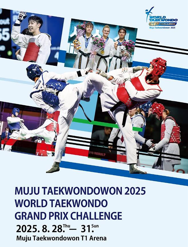 [이데일리 스타in 이석무 기자] 태권도진흥재단이 무주군, 대한태권도협회와 함께 오는 28일부터 나흘 간, ‘무주 태권도원 2025 세계태권도 그랑프리 챌린지’를 태권도원 T1 경기장에서 개최한다.