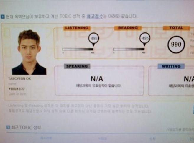 아이돌로 활동하며 무대 위에서 카리스마를 보여준 그는 **2012년 토익 시험에서 만점(990점)**을 기록해 모두를 놀라게 했습니다. 본인은 “가족 중에도 만점자가 많아 대단한 일은 아니다”라며 겸손하게 말했지만, 팬들과 대중에게는 ‘엄친아 아이돌’이라는 별명이 붙었습니다.