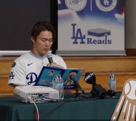 4일(이하 한국시간) LA 다저스 공식 SNS에 따르면 야마모토는 다저스 재단(LADF)과 함께 캘리포니아 라크레센타에 위치한 던스모어 초등학교를 찾아 일본어·영어 이중 언어 교육을 받는 학생들과 함께 이야기 나누는 시간을 가졌다.