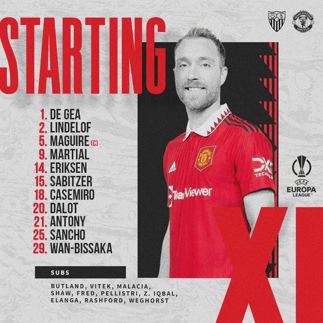 원정팀 맨유는 4-3-3 포메이션을 가동한다. 산초, 마르시알, 안토니, 자비처, 카세미루, 에릭센, 달롯, 린델로프, 매과이어, 완-비사카, 데 헤아가 출격한다.