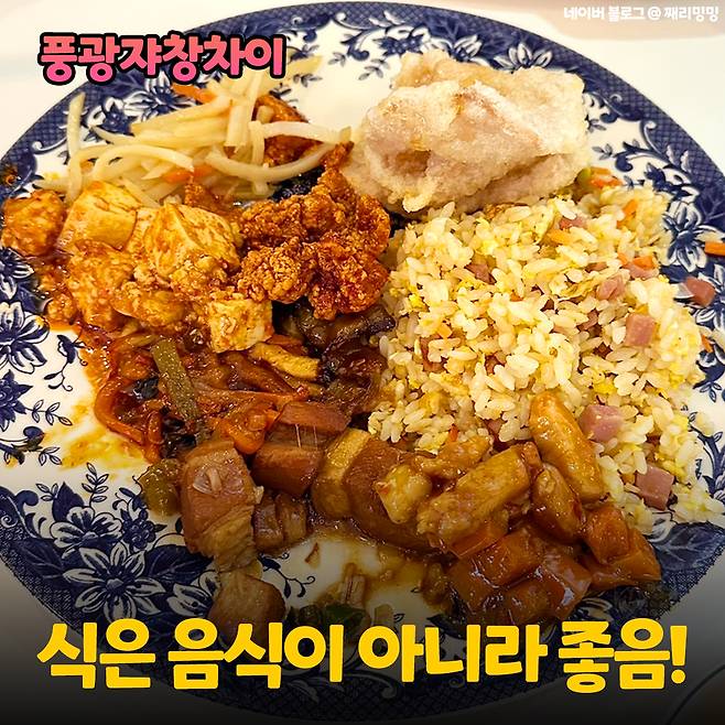 흰색 테이블에 아기자기한 분위기의 풍광쟈창차이! 아니 이곳이 어떻게 중식당? 분위기 좋은 카페라고 해도 믿어지는 장소랍니다. 다양한 중식을 접시에 골라 담으면 사진 찍기 딱~ 접시가 예뻐서 사진으로 기록해 두기 좋아요><