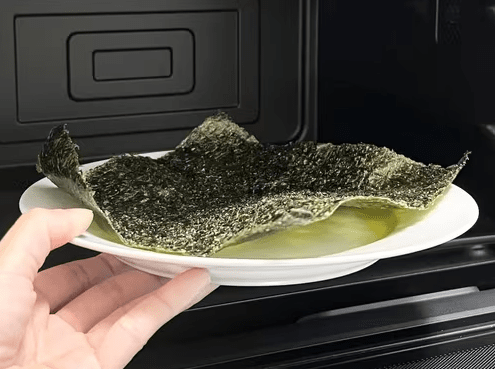 눅눅해진 김을 전자레인지에 10초 정도 돌리면 놀라울 만큼 바삭함이 되살아난다. 이 과정에서 김 속의 수분이 날아가면서 다시 원래의 식감에 가까운 상태로 돌아간다. 너무 오래 돌리면 탈 수 있으니 10초 정도로 시작하고, 상태에 따라 5초 단위로 조절하는 게 좋다.