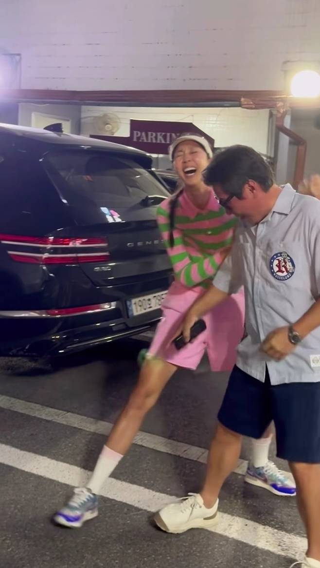 또, 전미라는 핑크 숏팬츠를 착용해 활기차고 러블리한 분위기를 자아냈습니다.