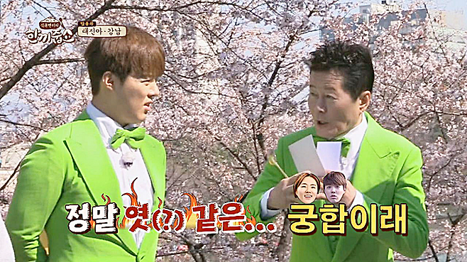이후 정글의 법칙 멤버들 간의 친목모임을 통해 친해진 두 사람은 호감을 넘어 연인으로 발전했는데요. 연애 초반 강남은 이상화를 태진아에게 소개했고 두 사람의 인연을 특별하게 여긴 태진아는 역술인에게 둘의 궁합을 묻기도 했습니다. 이에 역술인은 강남과 이상화의 궁합이 '엿 같다. 엿처럼 끈끈해서 쉽게 떨어지지 않는 궁합'이라고 말했다고 하네요.