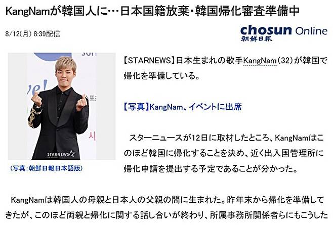 한국인 어머니, 일본인 아버지 사이에서 태어난 강남은 현재 일본 국적을 가지고 있습니다. 하지만 평소 한국에 대한 애정이 남달랐던 그는 지난해 말부터 귀화를 준비해왔으며, 가족과도 여러 차례 상의 끝에 관련 논의를 끝냈다고 하는데요.