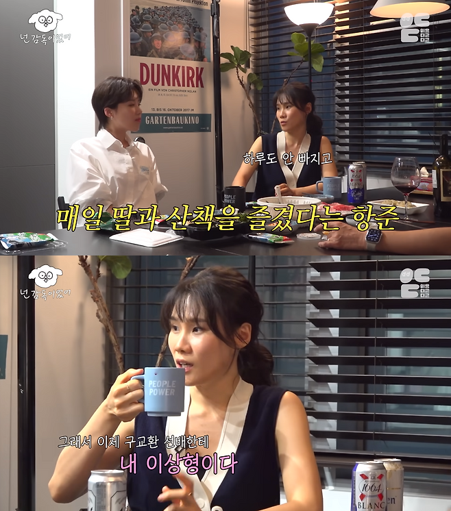 이에 이옥섭은 "잘 모르겠다. 아기처럼 소중한 존재가 생기는게 무섭다"며 솔직한 마음을 공개한데 이어, 딸과 함께 매일 산책한다는 자상한 아빠인 장항준이 자신의 이상형이라고 밝혔습니다.