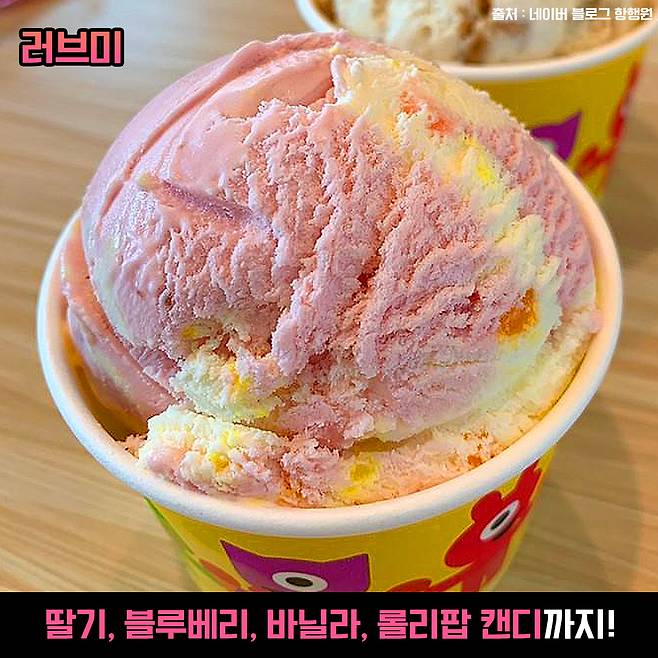 딸기, 블루베리, 바닐라 아이스크림에 롤리팝 캔디가 쏙쏙 들어가 있는 러브미 아이스크림. 러블리한 네이밍에 봄시즌 한정판인 게 너무 잘 어울렸지만, 사계절 내내 먹고 싶은 분들 많다구요~