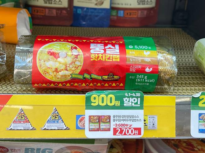 명란의 짭짤함과 마요네즈의 고소함이 어울리는 단짠 조합의 삼각김밥.
