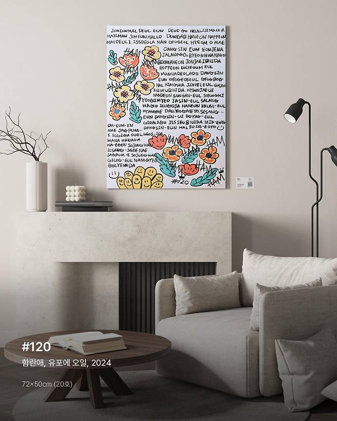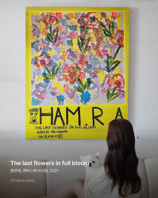 함란애 작가가 그린 꽃은 자유로운 율동감이 느껴집니다. 지루한 공간을 더욱 다채롭고 감각적으로 만들고 싶다면 적극적으로 추천해드리는 작품입니다.