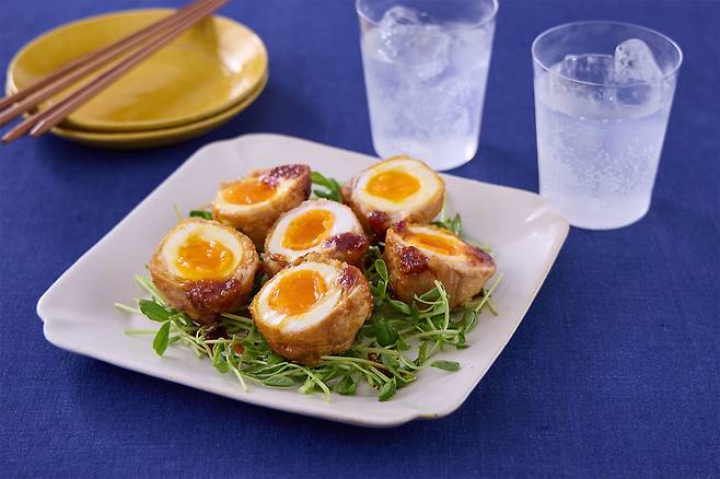 반숙 계란 고기 튀김은 밥반찬뿐 아니라 술안주로도 인기 만점이다. 크기를 작게 만들면 도시락 반찬이나 아이들 간식으로도 좋다.