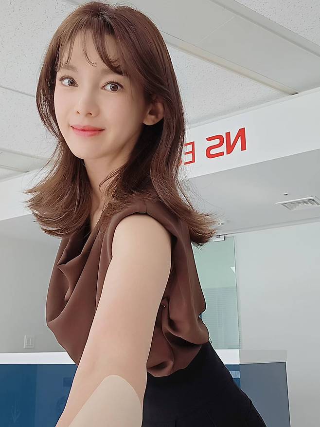 슬리브리스 블라우스 하나로 현실감까지 담아낸 그녀의 룩