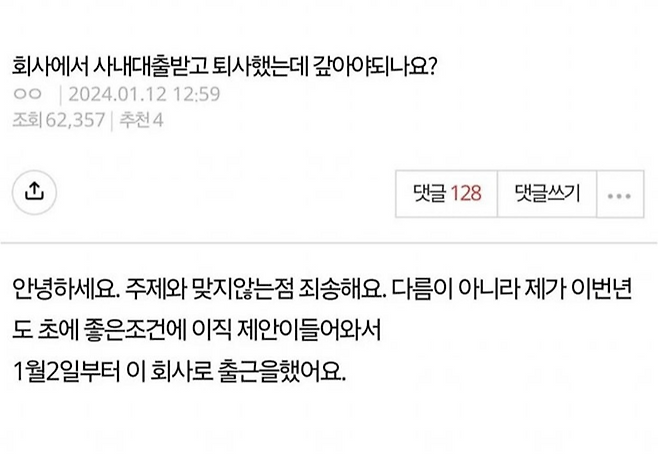 사내대출 받고 퇴사했는데 갚아야하나요?