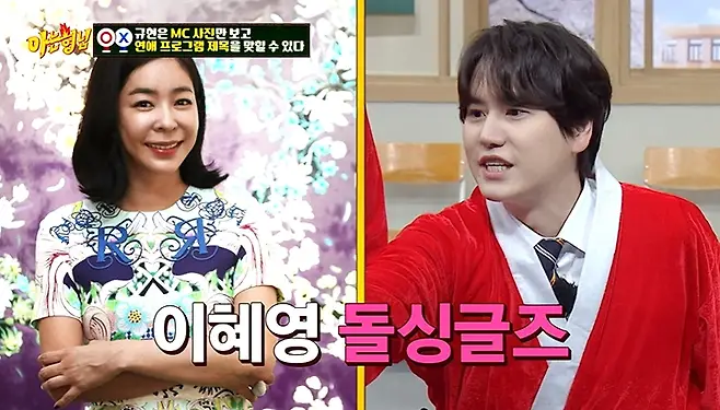 규현은 이이경, 뱀뱀, 양재웅을 연달아 즉답으로 맞춰 애청자의 면모를 보였으며 두 번째 문제에는 MBN ‘돌싱글즈’의 진행자 이혜영의 사진이 등장했다.