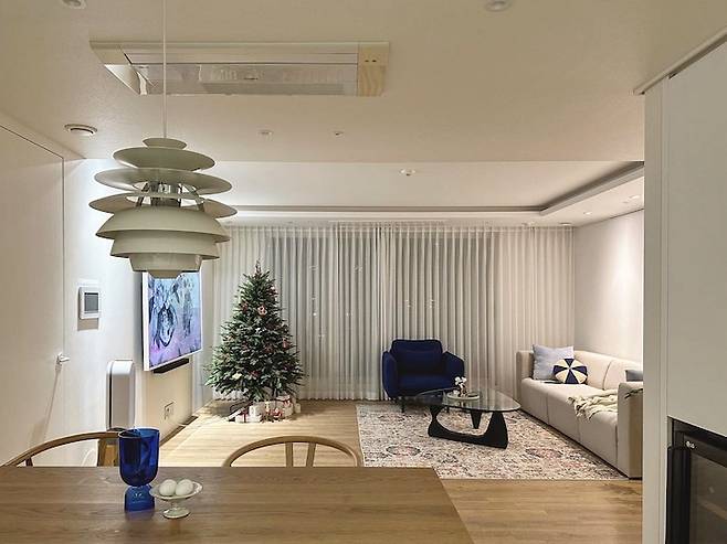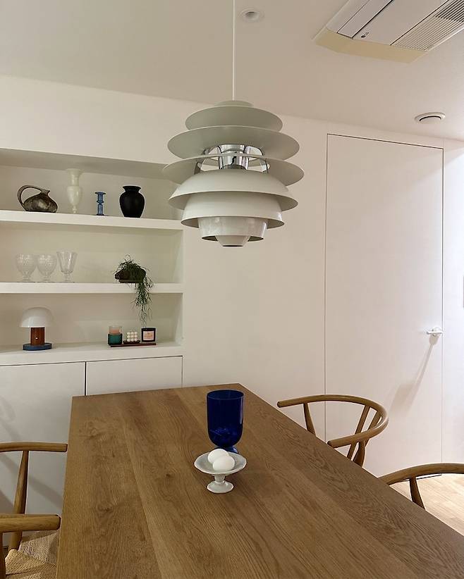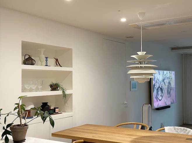 식탁 조명은 작년 가을 새로 들인 제품이에요. 기존에 사용하던 조명이 제가 원하는 집의 분위기와 잘 맞지 않고 다른 가구들과도 어우러지지 못하는 것 같아 교체했는데 교체 이후 집이 한층 단정해졌어요.