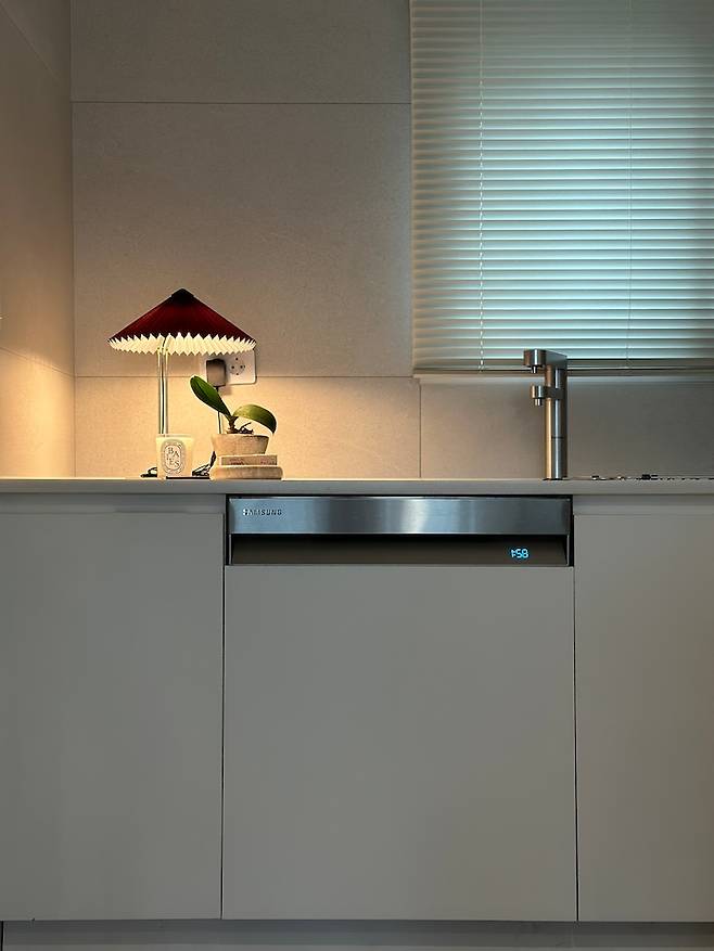 식기세척기는 삼성전자의 빌트인 도어 부착형 제품을 선택했어요. 보통 도어 부착형 식기세척기는 밀레를 많이 선택하시는 것 같은데 다른 이유가 아닌 빌트인 때문이라면 신혼가구로 세트 구매하시는 삼성전자에도 도어 부착형이 있습니다!