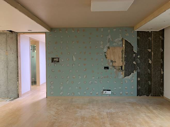 아트월과 수납장을 철거하고 히든 도어를 설치한 지금의 모습입니다.