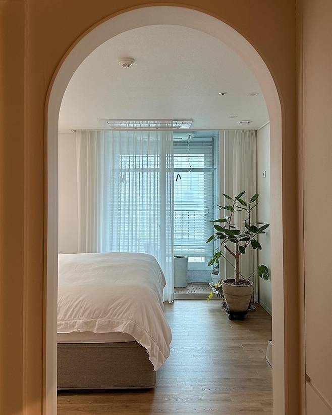 개인적으로 인테리어는 자주 바꿀 수 있는 게 아니다 보니 유행하는 것은 피하자 주의였으나 이 아치 도어가 안방의 아늑함을 더해주는 것 같아요.