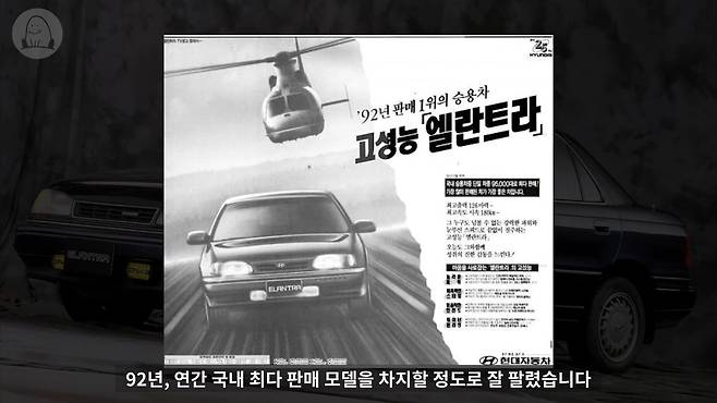 엘란트라는 유달리 큰 차를 선호했던 국내 소비자들의 성향 때문에 출시 초 경쟁차에 밀렸죠. 좋은 성적을 거두진 못했지만, 뛰어난 성능과 상품성이 입소문을 타면서 경쟁 차종을 압도한 것은 물론, 92년에는 연간 국내 최대 판매모델을 차지할 정도로 잘 팔렸습니다.