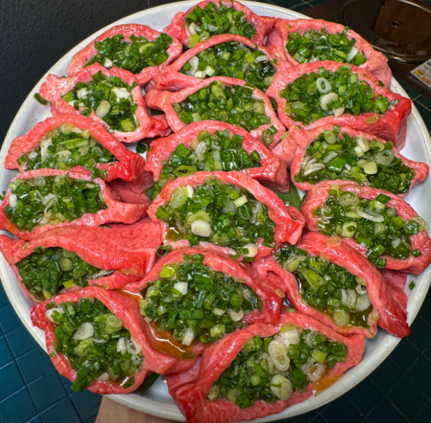 특상(파)우설 - 국내 희귀 부위, 두툼하게 썰어 파와 함께 구워내는 특별 메뉴