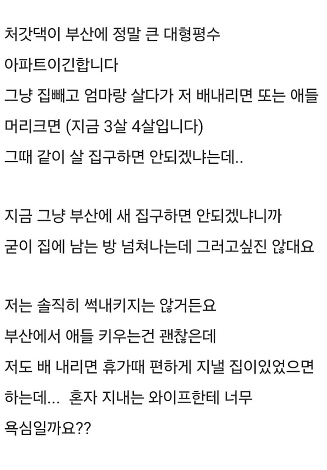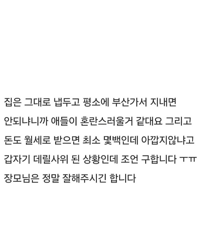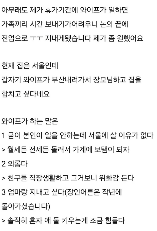 와이프가 친정이랑 집을 합치고 싶다는데..
